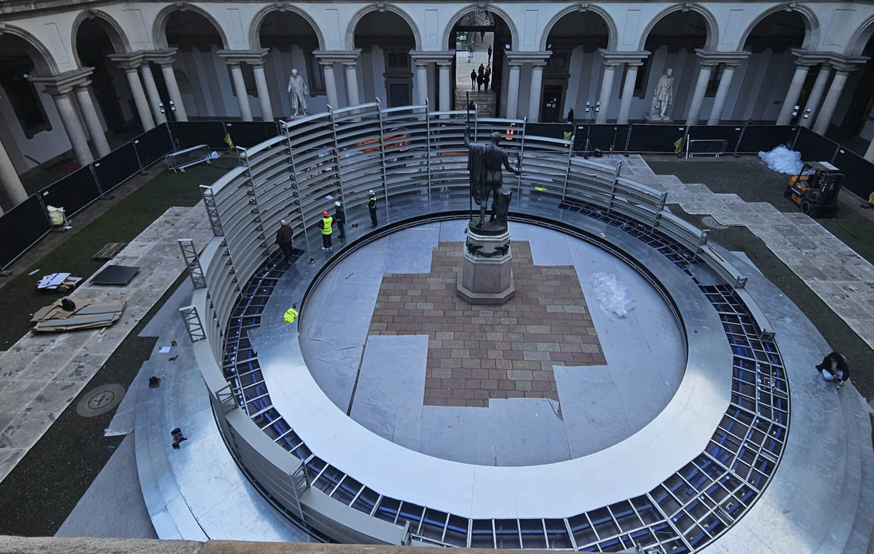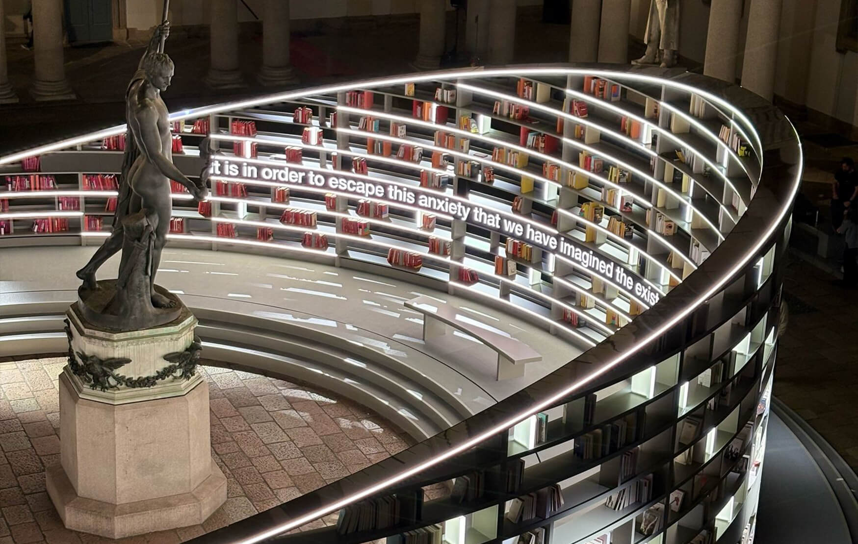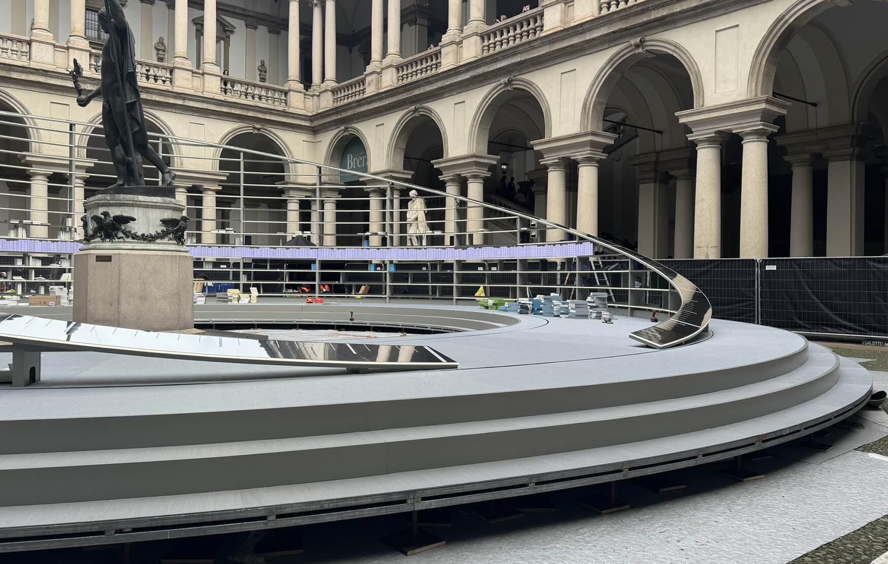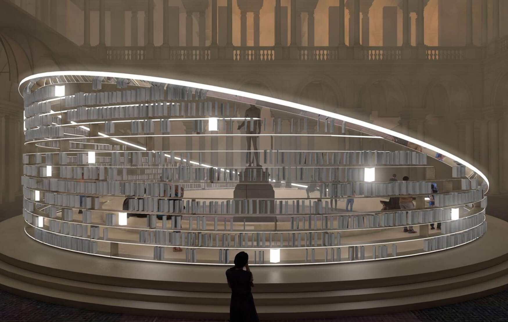 Library of light trova spazio al centro del Cortile d'Onore del XVII secolo, che collega la Pinacoteca di Brera, la Biblioteca Nazionale Braidense e l'Accademia di Belle Arti. É una straordinaria scultura, un "Faro di Sapere" dalla forma circolare (diametro di 18m), formata da scaffali luminosi contenenti oltre 2000 volumi.